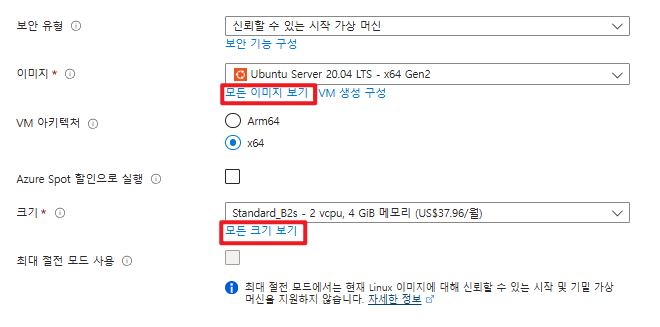 - 모든 크기 보기 > B2s로 설정