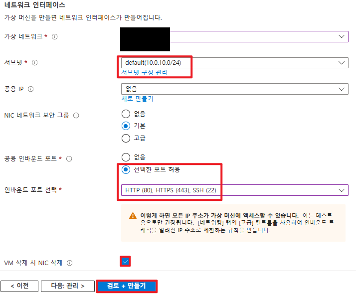 - NIC 네트워크 보안 그룹 : 없음