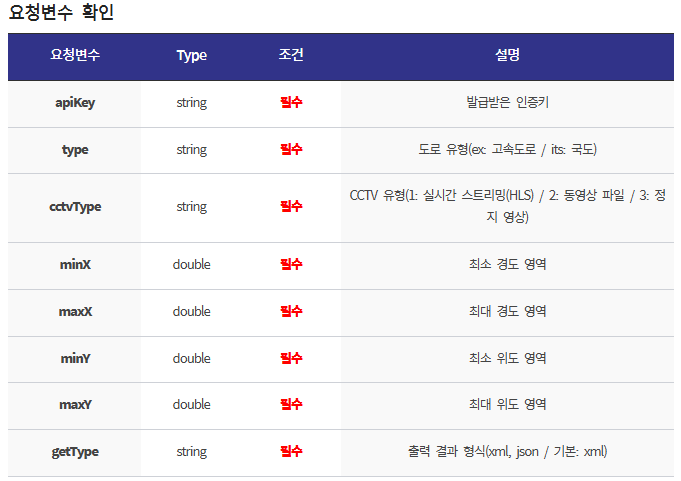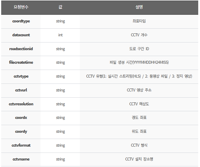 ITS(지능형교통체계) 국가교통정보센터에서는 CCTV 화상정보를 API로 제공한다.