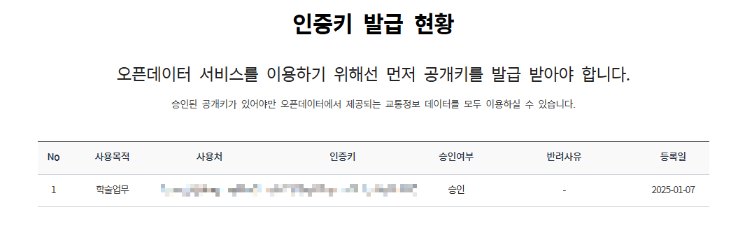 - 인증키 발급 신청 진행
