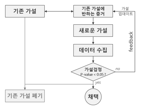 기존 가설 ←→ 기존에 반하는 증거