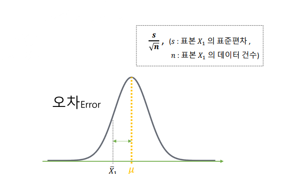 표준오차 : 표본을 가지고 모평균에서 추정했을때, 추정치에서의 오차